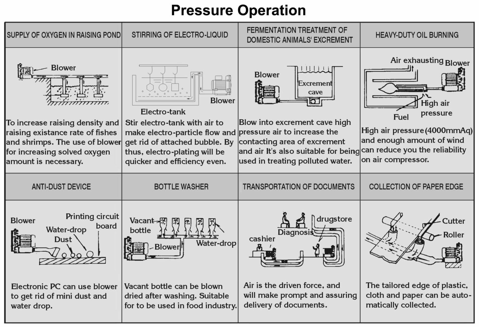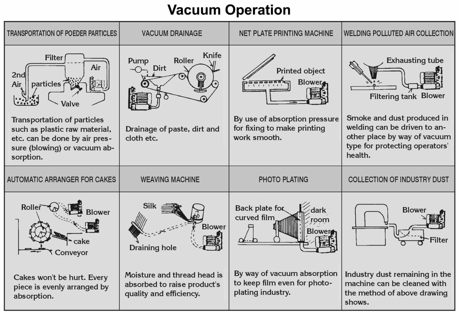 The ring blower (channel blower, air blower) made by aluminum alloy, that make it small body and light weight. Blower blades operate without coming into contact with the pump casing and with each other. Therefore, the blades do not require lubrication.