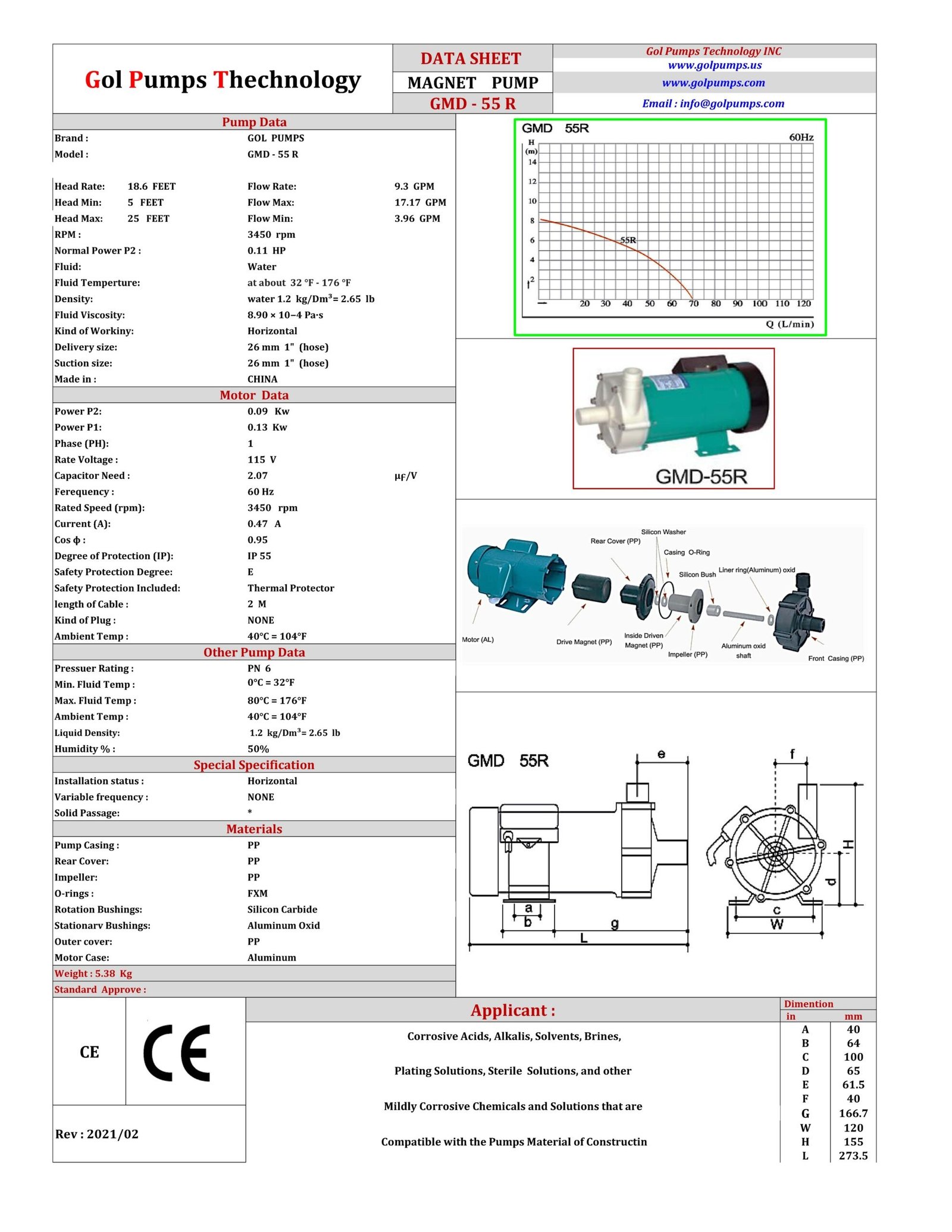 Magnetic Drive Pump For Acidic, Alkaline And Chemical Liquids – 115V – 130W , GMD1-55R