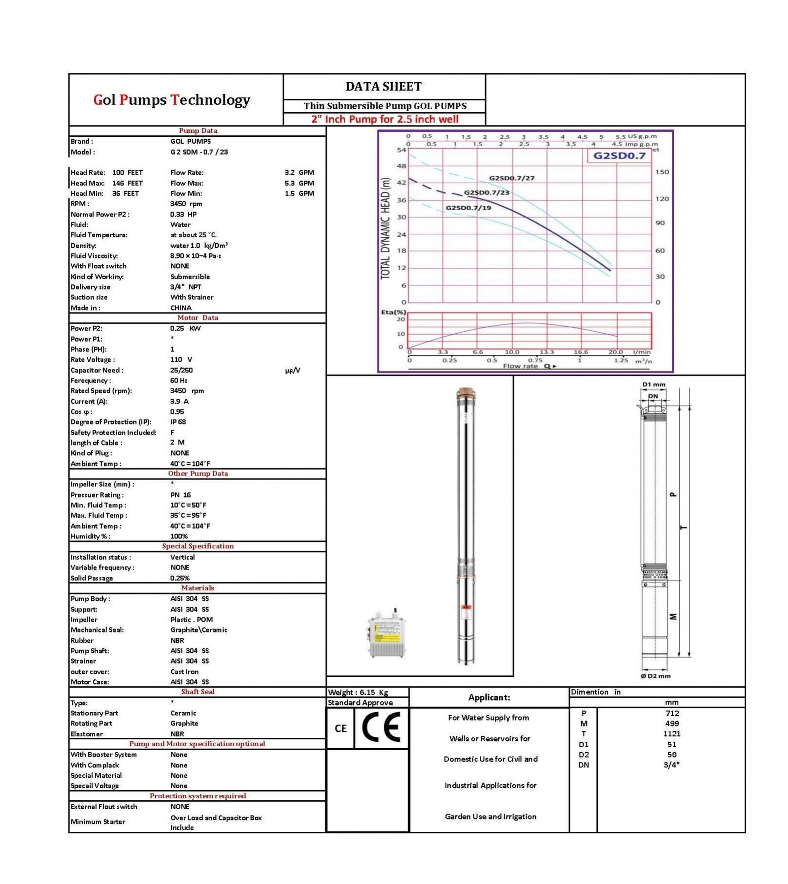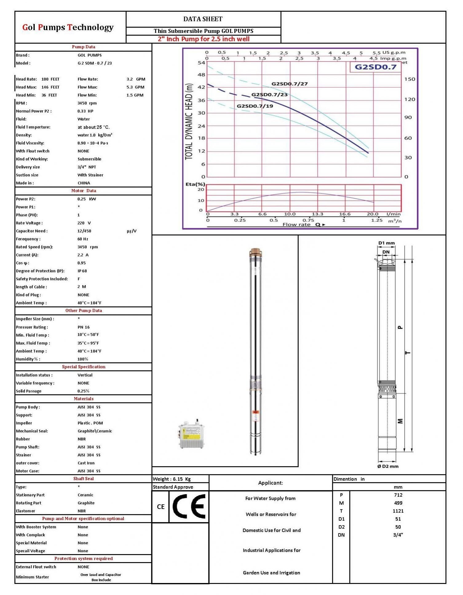 | G 2SDM0.7/23 | 0.25 | 0.33 | H (m) | 44 | 39 | 37 | 33 | 27 | 20 | 11 | |