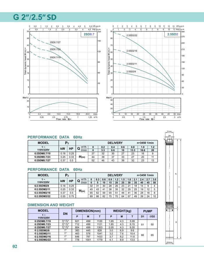 G 2.5SDM2/16 0.37 0.5 H (m) 65 62 59 55 51 46 41 36 28 18 8