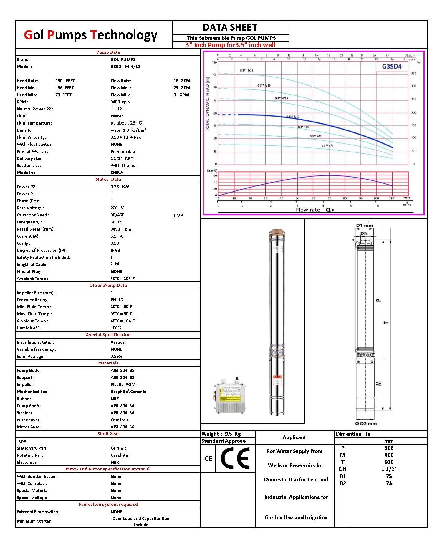 | 3SD M4/10 | 0.75 | 1 | H (m) | 59 | 59 | 58 | 58 | 57 | 54 | 51 | 47 | 41 | 35 | 28 | 19 | |
