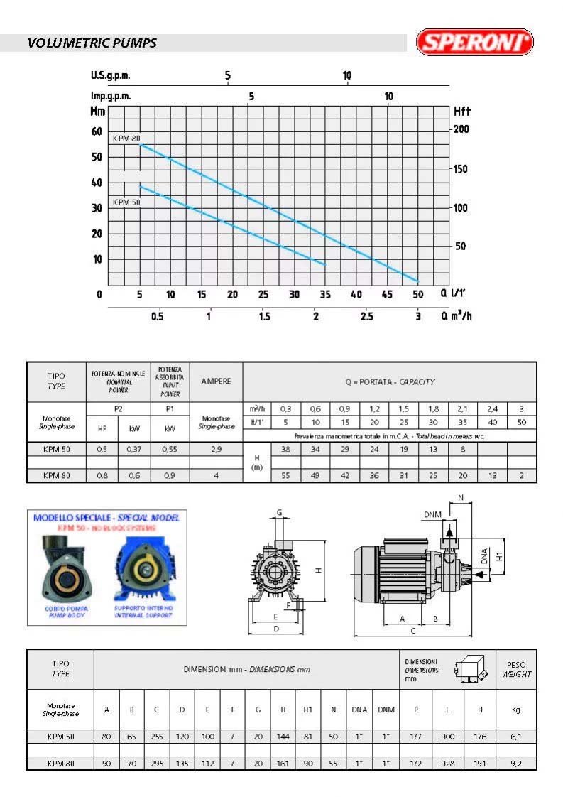 Speroni KPM50 BR Water Booster Pump for Clear water – 554 GPH – 1/2HP – 1″
