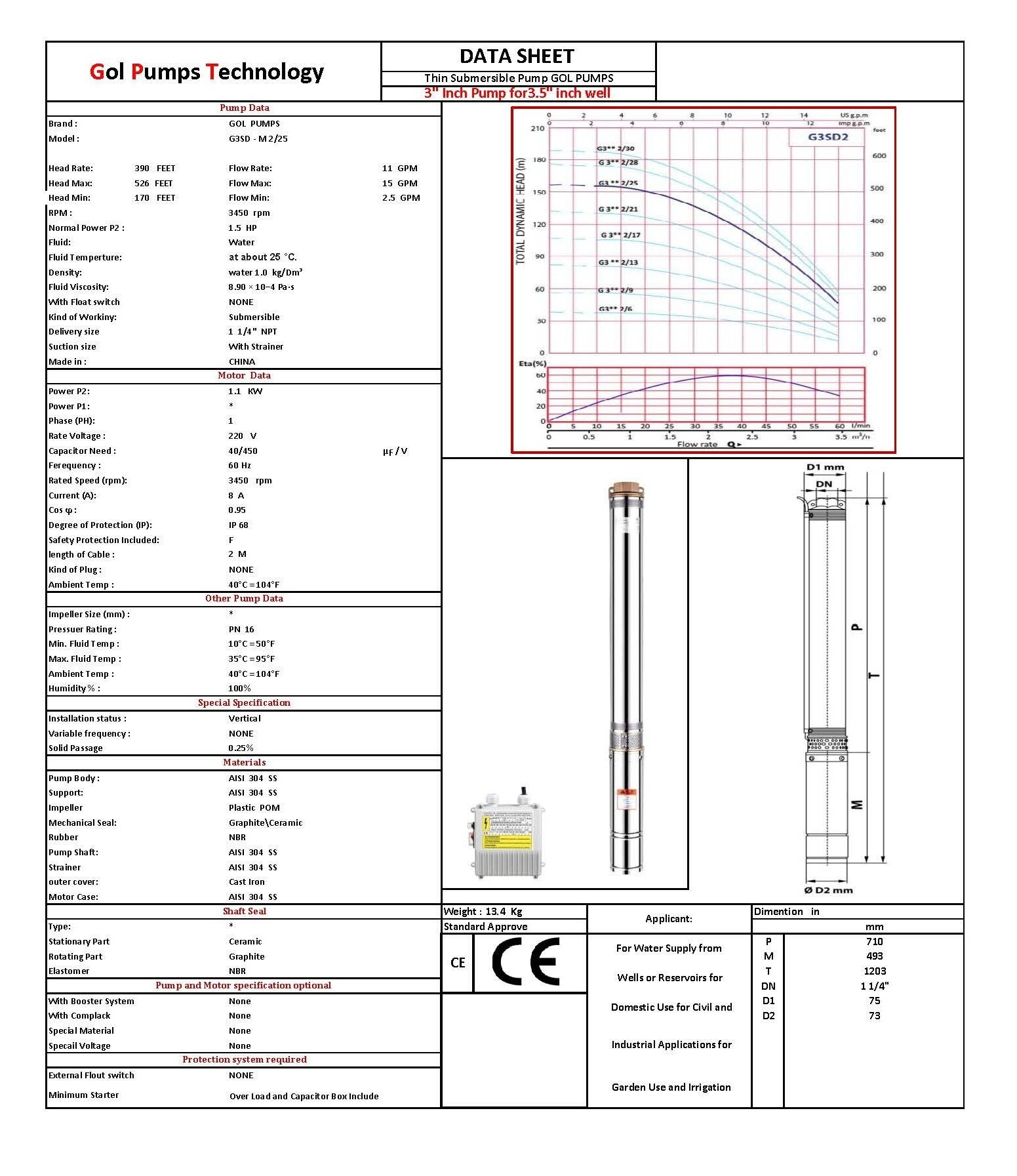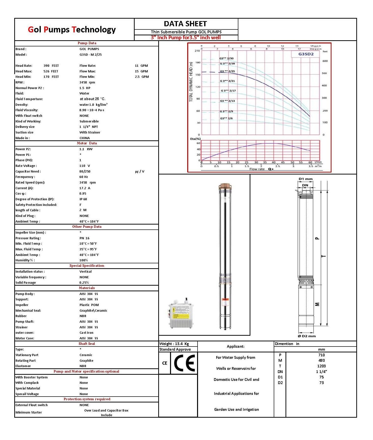 Be the first to review “Gol Pumps 3″ Thin Submersible Well Pump – 526Ft – 942 GPH – 3 Wire – 1.5HP” Cancel reply