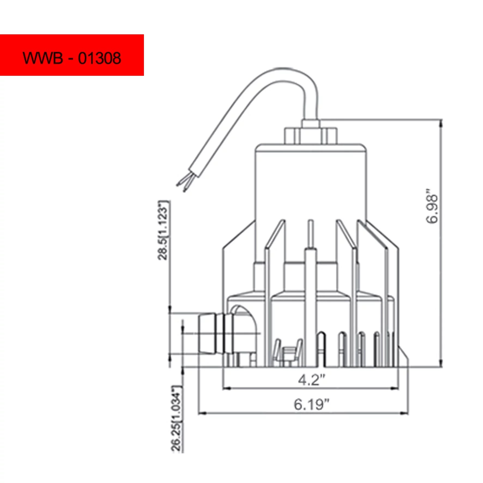 Submersible Bilge Pump WWB-01308 – 2000 GPH – 12/24V – DC