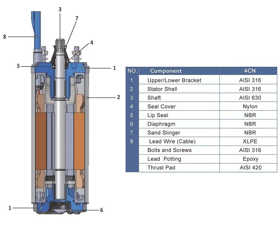 • Hermetically sealed stator, anti-track, stator resin filled prevent motor burn out.