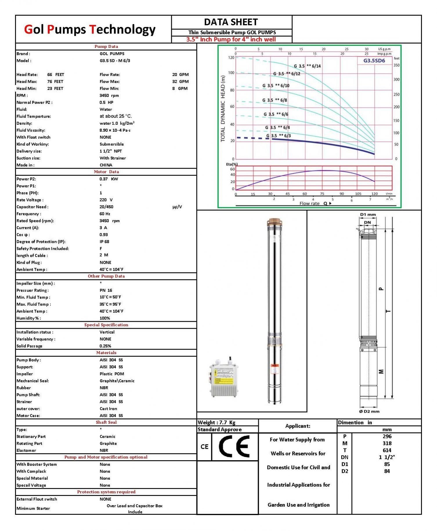 3.5SD M6/3 0.37 0.5 H (m) 25 25 24 23 22 19 16 11 6